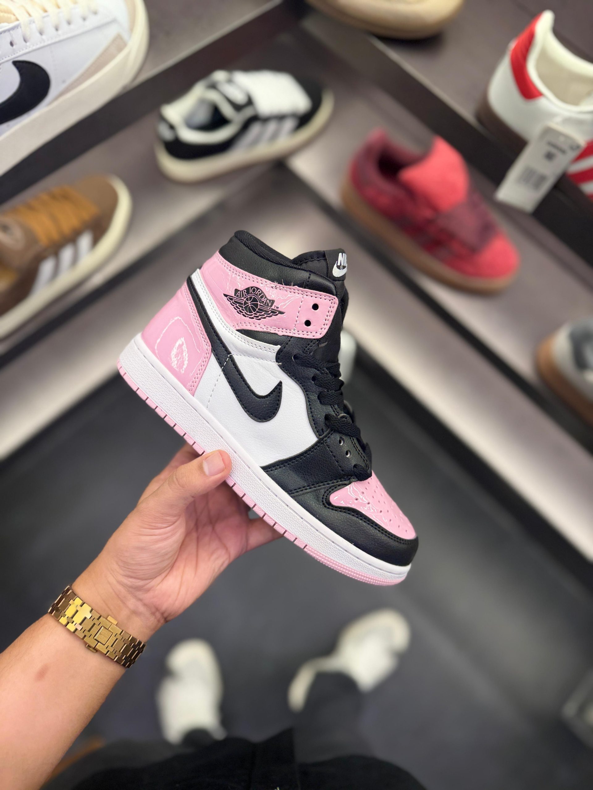 Bring playful energy and high-end street style to your sneaker rotation with the First Copy Air Jordan 1 Retro High “Bubble Gum” — a stunning replica of the original drop that blends iconic design with bubble gum-inspired flair. Featuring soft pink tones, patent leather finish, and classic Jordan heritage, this pair delivers standout looks with unmatched attitude.