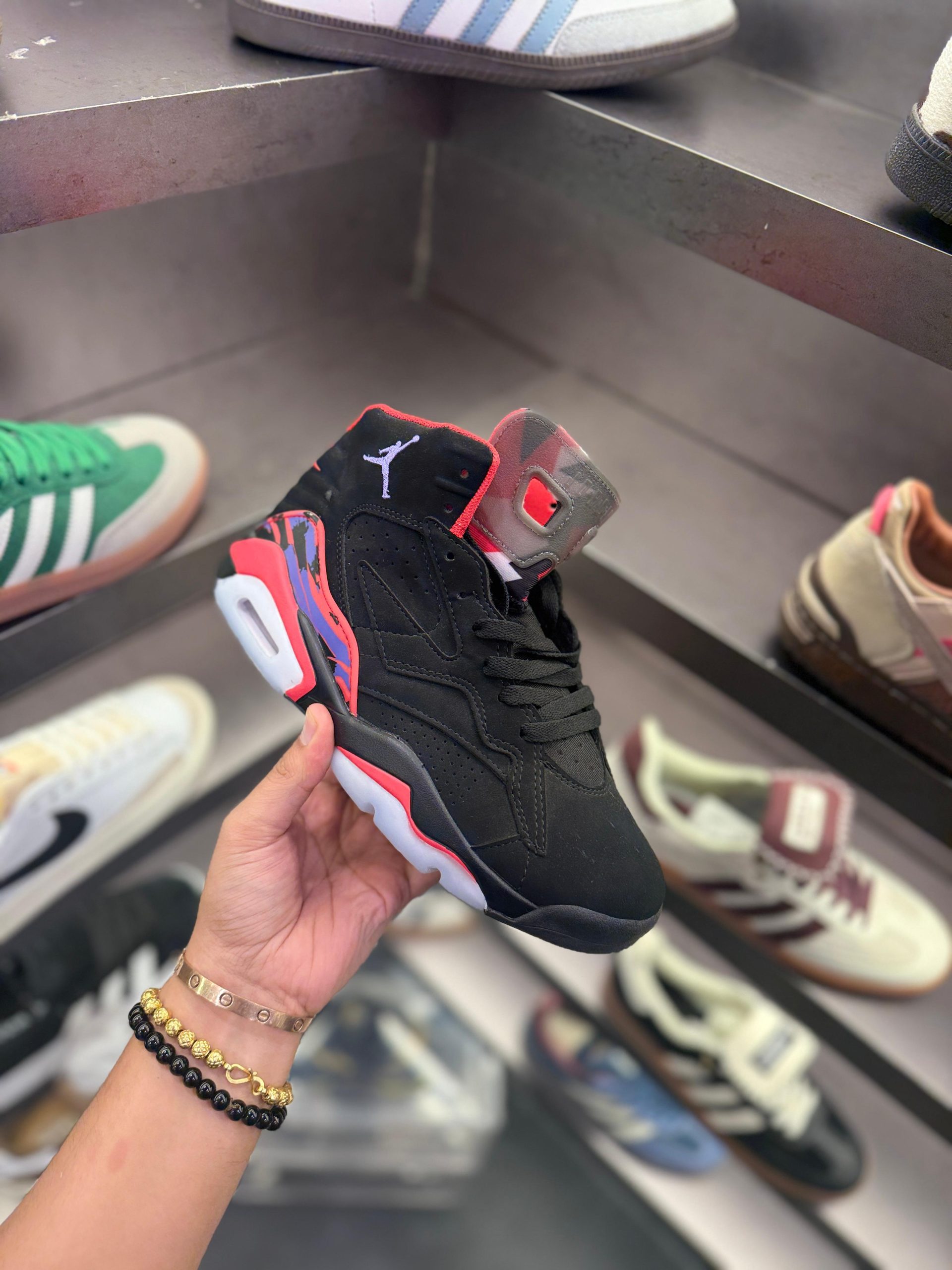 Step up your sneaker game with the First Copy Air Jordans Retro 6 Jumpman MVP Black Red, a perfect blend of legendary basketball heritage and modern street style. Inspired by the iconic Air Jordan 6 silhouette, this premium first copy edition delivers the same bold look, aggressive detailing, and comfort that sneaker lovers crave—without the premium price tag.