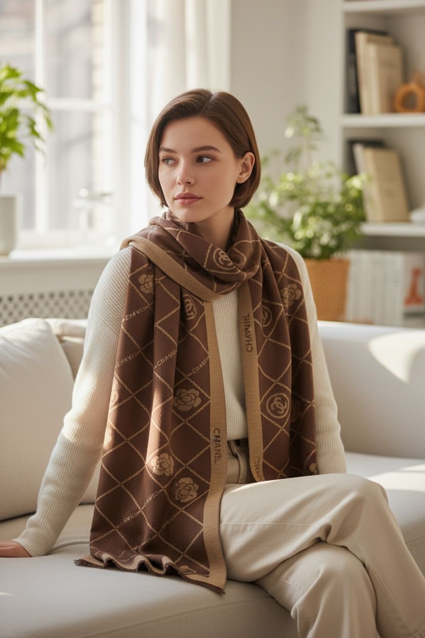 The signature Chanel CC initials add a touch of iconic sophistication, giving you the same designer-inspired look seen in high-fashion magazines. Whether you’re styling it with western outfits, ethnic wear, or winter coats, this stole adds instant elegance to any ensemble.