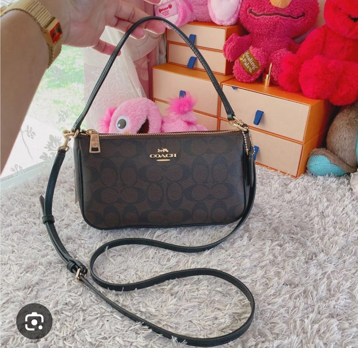 • Sleek gold-tone hardware and authentic-style Coach logo detailing