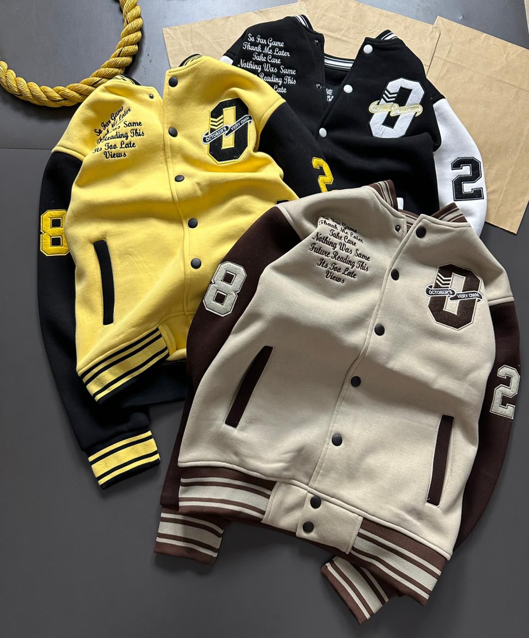 Upgrade your wardrobe with this First Copy Imported Varsity Jacket, crafted for style, comfort, and durability. Made from premium imported 3-thread cotton fleece, this jacket offers a soft and breathable feel, perfect for all-day wear. Designed with classic varsity aesthetics, it features ribbed cuffs and hem, a front button closure, and a sleek collar for a timeless look. Ideal for casual outings, college wear, or street-style fashion, this jacket combines trend and comfort effortlessly. Its imported high-quality fabric ensures long-lasting wear, maintaining its color and texture wash after wash. Available in multiple sizes, this varsity jacket is a must-have for fashion enthusiasts who value both style and comfort.