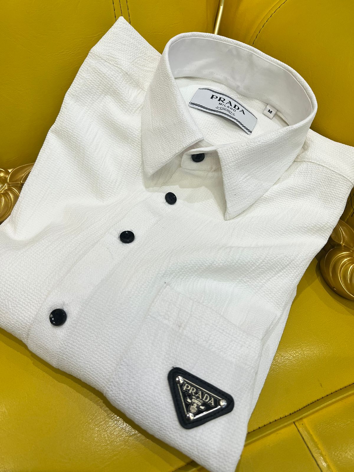 Step into modern sophistication with the First Copy PRADA Imported Cotton Shirts, crafted for men who appreciate clean lines, premium fabric, and timeless Italian luxury. Made from finely woven imported cotton, this shirt is soft, breathable, and tailored for a smart silhouette — perfect for formal, semi-formal, or luxury casual wear.
