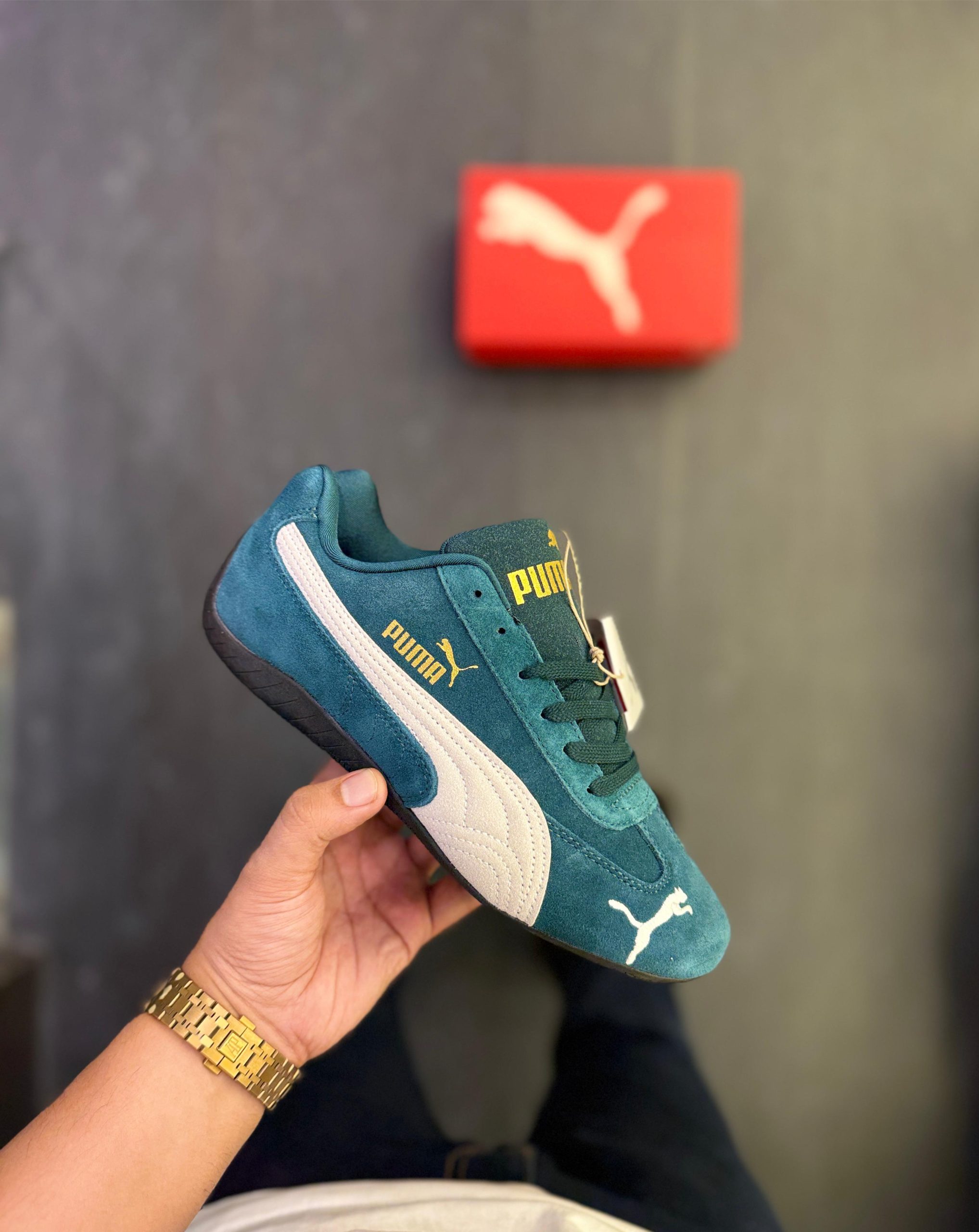 Step up your sporty style with the First Copy Puma Speed Cat Dark Green, a sleek low-profile sneaker designed for speed, comfort, and everyday streetwear appeal. Crafted with premium imported suede and synthetic materials, this first copy version mirrors the original Puma Speed Cat’s iconic silhouette and detailing.